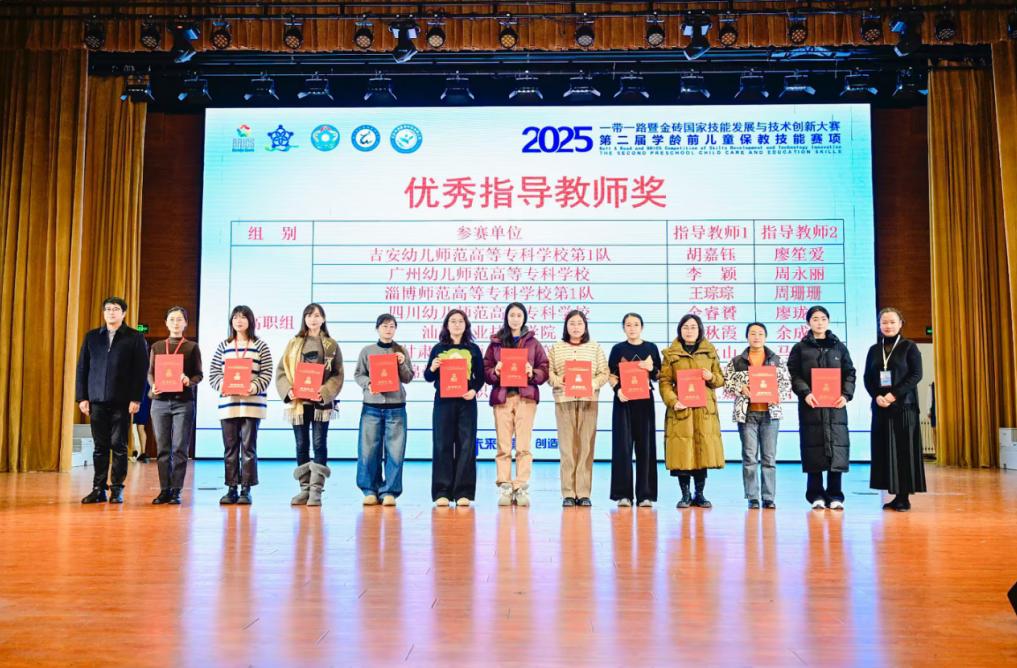 12月18日至22日,一带一路暨金砖国家技能发展与技术创新大赛之第二届学龄前儿童保教技能赛项决赛在烟台市成功举办。来自全国151支参赛队伍同台竞技,学前教育学院在此次大赛中再创佳绩,由王琮琮、周珊珊老师指导的学生张云飞、韩昊蓉荣获高校学生组一等奖(金牌);由李敏、高红老师指导的学生李安琪、齐一诺荣获高校学生组二等奖(银牌);由董玉娟、赵延平老师指导的学生张歆兰、付欣悦荣获中职学生组三等奖(铜牌);王琮琮、周珊珊、李敏、高红老师荣获“优秀指导教师”称号,我校被授予“最佳组织奖”称号。