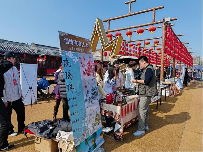 4月2日,淄博市“聚创淄博”创业服务月启动仪式暨“金周村・银子市”大学生轻创非遗市集,在周村古商城创业街区拉开帷幕。淄博师专创新创业系积极响应全市“创业陪跑”行动号召,精心组织师生团队携非遗创新项目参展,以实际行动践行“产教融合、服务地方”办学理念,主动融入地方,校地携手联动,为非遗传承与青年创业搭建融合发展新平台。