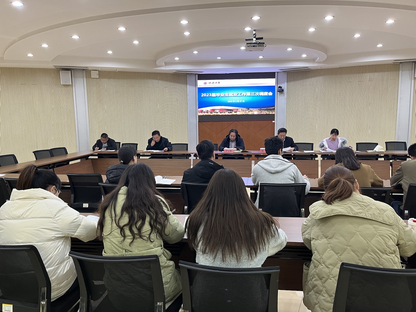 3月17日,为贯彻国家、省、市有关大学生就业创业工作方针、政策、文件精神,结合我校目前就业创业工作实际,我校召开了2023届毕业生就业创业工作第三次调度会。党委委员、副校长尹玉箫,招生就业处负责人、院系副书记、学工科长、负责就业工作的辅导员和就业科人员参加会议。会议由招生就业处负责人主持。
