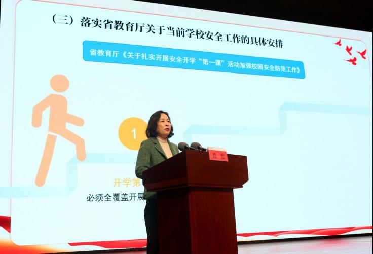 为深入贯彻落实省委、省政府及省教育厅关于校园安全工作的统一部署,进一步强化全校师生安全意识,筑牢校园安全思想防线,3月11日下午,党委副书记、校长高霞在奂山论坛报告厅为师生讲授安全开学“第一课”。