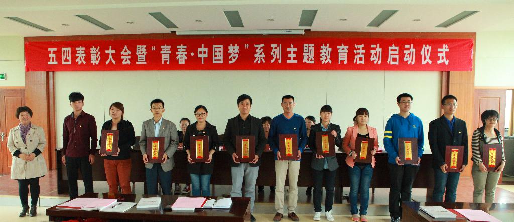 5月9日下午,我校五四表彰大会暨“青春·中国梦”系列主题教育活动启动仪式在办公楼3楼顺利举行。学校副校长郭小文,学校团委书记刘晓莉,团委团干部、各院系团总支书记、受表彰团员团干部代表、学生干部代表参加了大会,会议由姜磊主持。