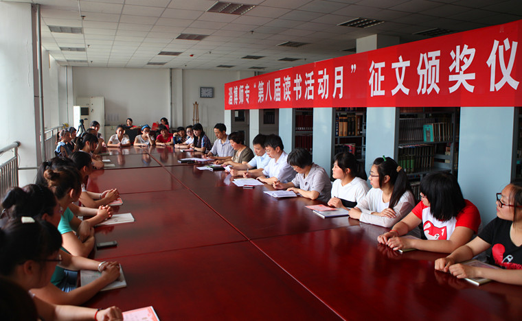 5月23日下午,淄博师专第八届读书活动月颁奖仪式暨闭幕式在图书馆三楼工具书阅览室举行。宣传统战处处长朱连斌、团委书记刘晓莉、图书馆馆长赵一兵、人文科学系主任助理王剑萍、获奖代表以及来自各院系的学生代表30余人参加了会议。会议由图书馆副馆长王光志主持。