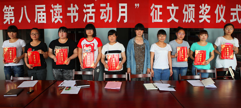 仪式上,朱连斌宣读了第八届读书活动月主题征文获奖名单,随后朱连斌、刘晓莉、赵一兵为获奖代表颁发了荣誉证书和奖品。刘晓莉发表了热情洋溢的讲话,她代表学校向获奖的老师和同学表示祝贺,并指出此次“读书月”影响大、成效显著,在全校师生中引起了广泛的关注,“读书月”虽然落下了帷幕,但希望同学们借着读书月的氛围爱上阅读,爱上一个美好的身份“读者”,并将读者的身份延续下去。随后,一等奖获得者数理科学系学生齐竹青宣读了《淄博师专第八届读书活动月倡议书》,号召同学们要崇尚读书、终身读书、博览群书,并能学以致用。