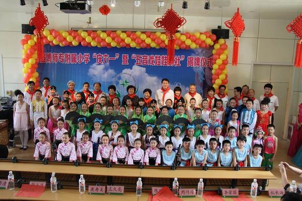 五音戏是全国独有剧种,有二百多年历史,以唱腔优美动听,语言生动风趣,表演朴实细腻而著称,地方特色浓郁。学校聘请到五音戏表演艺术家、原淄博市戏剧院院长霍俊萍为校外辅导员。为使五音戏这一国家非物质文化遗产更好地传承发扬,霍院长从众多学校中选中附小为“五音戏”传承基地。此次“五音戏娃娃剧社”揭牌,标志着五音戏将在学校生根、发芽,这是学校艺术教育发展史上的又一个新起点,也是学校大力推进素质教育,促进学生全面发展的又一项新举措。