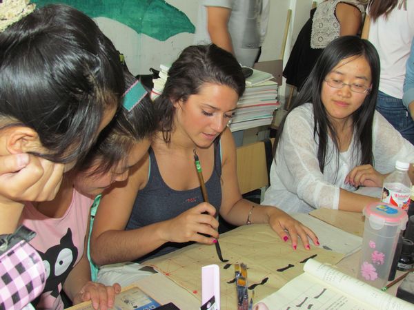 29日至30日上午,美方师生参观了淄博市陶瓷博物馆、周村古街、临淄殉马坑和齐国历史博物馆等文化景点,了解和认识了淄博市的社会历史文化。30日下午,美方师生又走进学校的课堂,体验参与了学校学生的手工课和书法课学习活动。