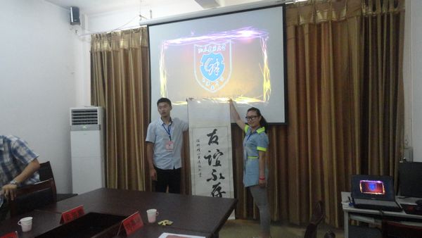 交流结束后,淄博师专自管会将书有“友谊永存”的我校学生书法作品赠送山建大自律会,希望两校在今后的工作学习中相互帮助。最后,由主持人致会议闭幕词,全体成员进行了合影留念。