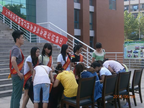 为进一步发挥校自管会的桥梁和纽带作用,竭诚服务学生,6月6日下午,淄博师专自管会在大学生事务中心门前开展了“学生建议征集日”活动,面向广大同学征集校内服务建议。
