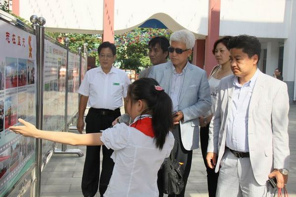 附小校长鹿纪林带领学校小记者团热情迎接韩国客人,借助校园文化宣传栏、学校专题片,向他们介绍了学校的发展历程、办学特色、取得的办学成绩。鹿校长把学校在国际交流方面的突出工作向李会长作了简要介绍,双方就两所小学文化艺术交流初步达成了合作意向。