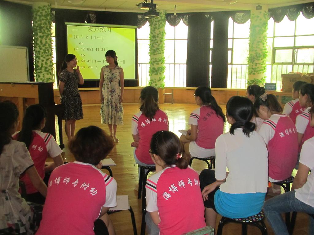 为加强教师交流,提高师资业务水平,6月20日中午,“幼儿园音乐教育中的声乐教学交流会”在附幼总园多功能教室举行,附幼领导和全体音乐教师应邀参会交流,学前教育学院声乐教师蒲晓冬结合专业优势,就“声乐基础理论”与大家进行深入交流,尤其对如何根据自身条件选择曲目、如何克服声乐演唱中出现的问题进行了详细讲解,并对幼儿园老师进行了现场指导。