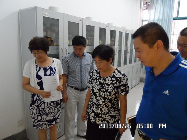 检查人员首先查看了化学药品的分类储存摆放情况,实验室的档案,重点查看了实验室安全方面的材料等。同时,依据实验室安全标准要求,对药品的购买、保管和使用制度的落实情况、教学仪器药品使用的程序(包括实验通知单、实验记录和药品统计表等)、对实验室水电、排气通风、安全消防、防火防爆等设施进行了检查并当场提出了整改意见。