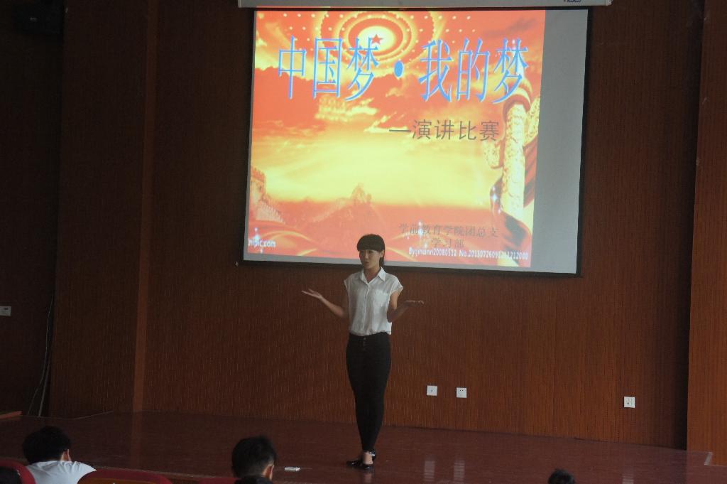 为使学生深刻领会和把握习近平总书记关于“中国梦”论述的丰富内涵和精神实质,教育广大青年学生继承光荣传统,弘扬民族精神,根据学校团委关于开展“我的中国梦”主题教育活动的要求,9月2日下午,学前教育学院举办“中国梦·幼师梦”主题演讲比赛,来自全院的20多名学生参加比赛,专业课教师担任评委。