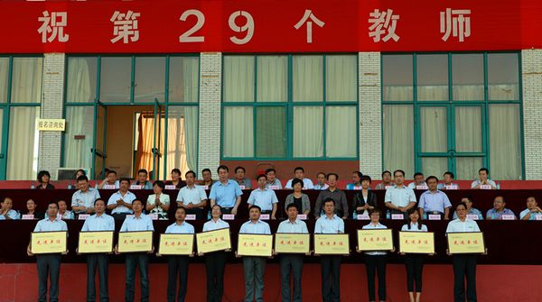 9月6日下午,在第29个教师节来临之际,学校隆重举行庆祝2013年教师节大会,表彰在2012-2013学年度为学校发展做出突出贡献的先进单位和优秀个人。学校老领导、党政领导班子成员、各单位负责同志、全体教职员工及学生代表参加大会。校长王久亮主持会议。