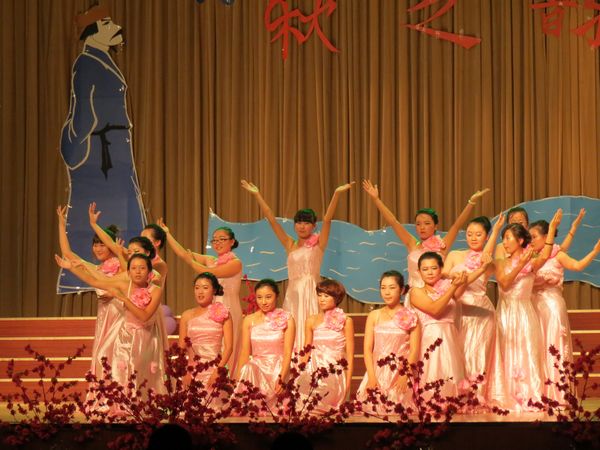 歌舞朗诵《明月几时有》拉开了演出的序幕,接下来的一首首朗诵《相信未来》《再别康桥》《春水》,带大家重温了经典名篇,享受了一场听觉的盛宴;穿插的歌舞《红豆词》《乌夜啼》,更是在高雅的朗诵中增添了古典的韵味,意味悠长;赵姗姗和张丽萍老师献上的《乡愁》将晚会的“思乡之情”推向高潮。晚会在《双城记》《我的祖国》的朗诵中落下帷幕,这些诗篇都透露出同学们对于祖国母亲的深深的爱恋之情。观众被台上的朗诵者深深的吸引着,跟随着他们的脚步遨游在诗歌的海洋中,不时响起阵阵掌声。