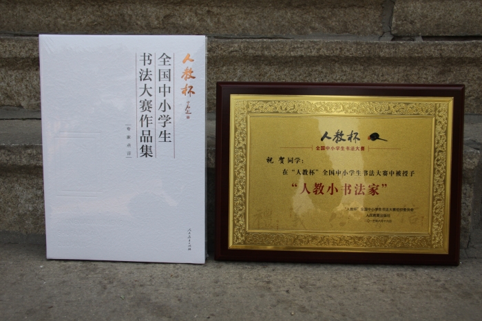 近日,淄博师专附属学校(附中)刘蕴仪和祝贺两名同学在“人教杯”首届全国书法大赛中获得毛笔组优秀作品奖,祝贺同学同时被大赛组委会授予“人教小书法家”称号。此次大赛由人民教育出版社承办,著名书法教育家欧阳中石先生担当顾问,是全国最高规格的中小学生大型书法比赛,全国范围内入围作品仅有八十件,两名同学喜获佳绩,实属难能可贵。