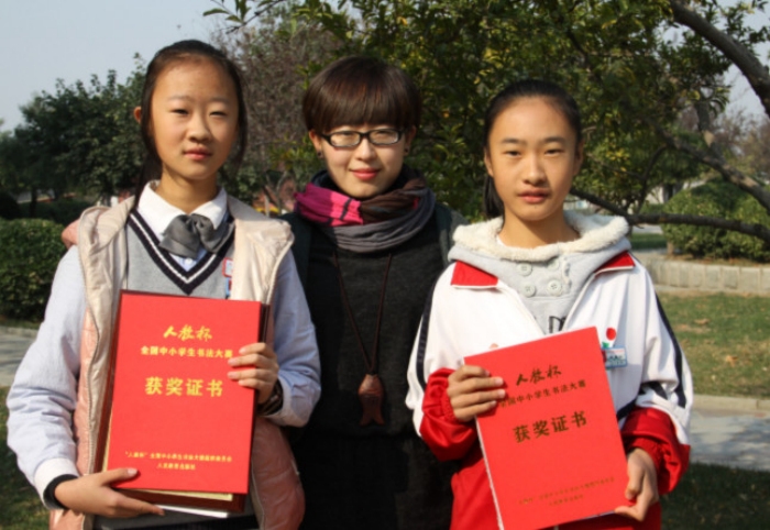 近年来,附中一直重视书写教育,专门开设了书法课程,并组织了相关选修课和社团等课外兴趣小组。通过课堂教育与课外辅导相联系,不仅提高了同学们的书写水平,而且提升了同学们的综合素质。此次“人教杯”书法大赛好成绩的取得,展示了附中学子的书法创作水平,他们将珍惜每一次学习和锻炼的机会,努力提升自身专业素质,力争在全国性的比赛中再创佳绩。