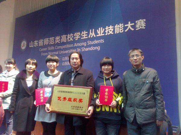 11月15日——17日,我校9名学生和6名带队教师参加了山东省首届师范类高校学生从业技能大赛,取得了优异成绩:学校获得山东省师范类高校学生从业技能大赛优秀组织奖;小学语文组一等奖1名(最高分),二等奖2名;小学数学组一等奖1名,二等奖1名,三等奖1名;小学英语组二等奖2名,三等奖1名;王琪老师、胡安波老师获优秀辅导教师奖。