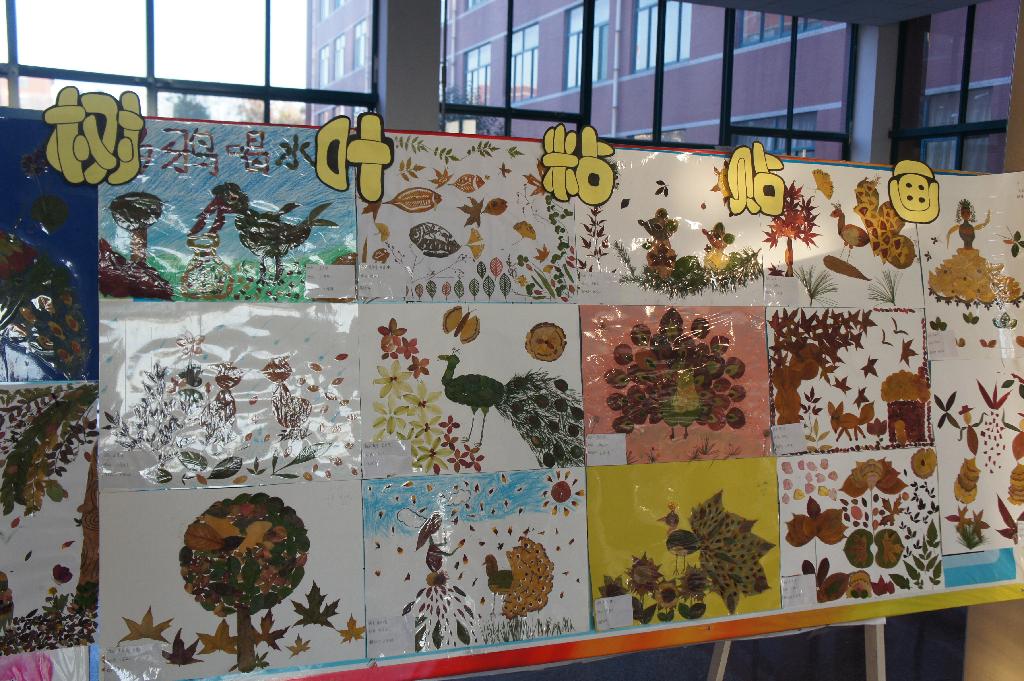 醉人的秋色,少不了色彩斑斓的树叶来点缀,在秋去冬来之际,学前教育学院学生在美术教师王琮琮的指导下,利用树叶进行了一次别开生面的树叶粘贴画作品展。