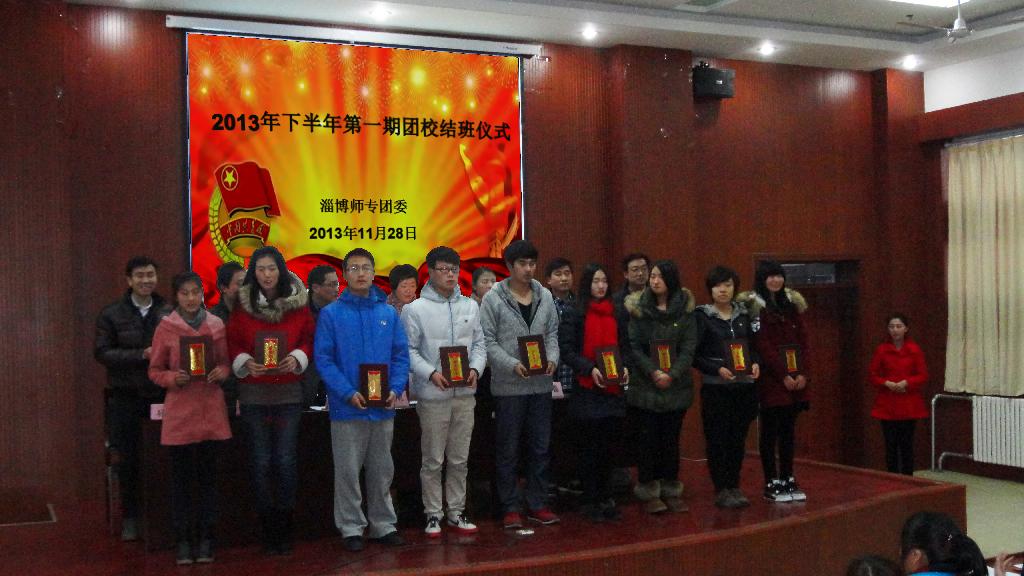 讲座结束后,进行了团校培训班的结班仪式。仪式上宣读了《淄博师专团委关于表彰2013年下半年第一期团校优秀学员的通报》;老师们分别为考核合格的学员代表和优秀学员代表颁发了结业证书、荣誉证书和奖品。最后,团委书记刘晓莉发表了热情洋溢的讲话,刘晓莉代表团委,对广大团学干部对我校共青团事业的倾力付出表示感谢,对广大团校学员顺利结业表示祝贺,并对全校团学干部提出“牢记使命、履行职责,勤学敏行、做好桥梁,团队合作、开拓创新”三点希望。