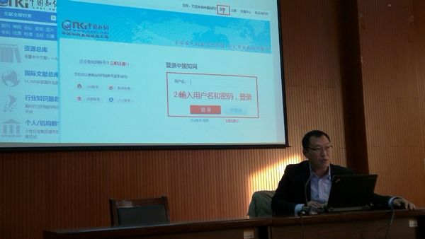 讲座邀请了中国知网王瑞经理主讲,他以中国知网CNKI数据库为中心,图文并茂的讲解了图书馆数字资源的检索方法及使用技巧,并联系学生的学习实际列举多个例子进行现场演示。最后,图书馆谢斐老师为大家介绍了图书馆购买的其他电子资源的使用方法。