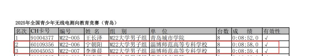 10月12日,2025年全国青少年无线电测向教育竞赛暨全国“智力猎狐”无线电测向亲子赛(山东青岛站)的比赛在青岛开赛。我校科技体育社团指导教师刘钊带领体育系宁朝阳、李继晨2名同学参加比赛,经过激烈角逐,2名运动员分别获得了M22组别的第二、三名,我校获优秀组织奖。