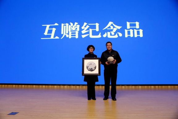 仪式现场,两校还举行了纪念品互赠环节。淄博师专科研处负责同志与青高职院学生工作部部长夏杰代表两校交换纪念品。精心准备的纪念品,承载着两校深厚的情谊,成为此次交流活动中珍贵的见证。