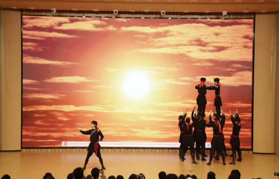 文艺展演环节,两校学生代表轮番登场,带来了精彩纷呈的节目。青高职院学子的“献哈达、锅庄舞”独具民族特色,将青藏高原的壮美与热情传递给现场每一位观众。淄师学子的舞蹈“草原汉子”充满青春活力,展现了齐鲁文化的豪迈与灵动。两校学子精彩的表演,赢得了现场阵阵掌声,也让他们在艺术交流中加深了了解、增进了友谊。