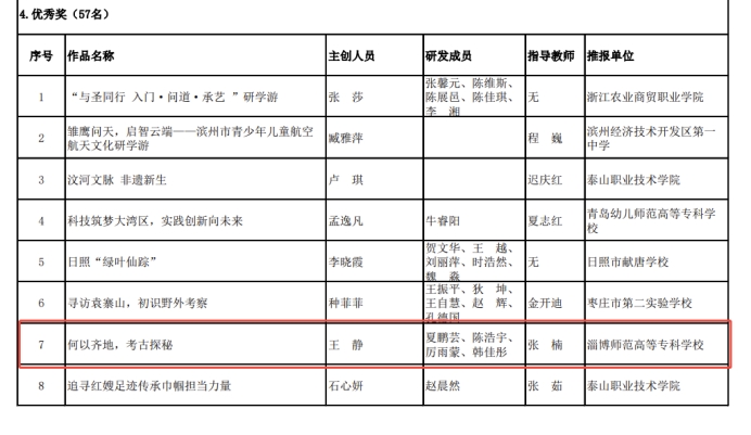 在第六届山东省研学旅游创新设计大赛系列赛事中,淄博师专文旅学院师生积极参与研学赛道的比拼。学院参赛团队紧扣研学旅行的课程设计、线路规划、安全保障等核心要点,结合地域文化特色与研学实践需求,提交的多份作品通过层层筛选,在众多参赛项目中脱颖而出,成功斩获院校组一等奖一项、三等奖两项和优秀奖三项,实现了学校在此赛项新的突破,斩获社会组二等奖一项和优秀奖一项。此次文旅学院师生获奖充分彰显了师生对研学旅行行业发展的深刻理解和实践创新能力。