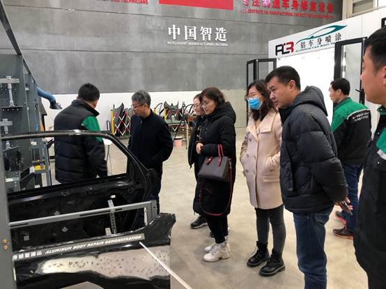 信息系一行首先参观了生产多功能汽车钣金整形机、二氧化碳保护焊机、多功能铝焊机、启动充电机、多功能短波红外线烤漆灯、环保电磁凹陷秒复仪(与意大利ALBATROS合作)、HVLP环保低压喷涂机、汽车新能源充电器和充电桩等汽车维修、保养、检测设备;接着,普来瑞电器有限公司孙士君董事长为大家介绍了公司发展历程及培训合作单位;最后,双方就汽车维修人才培养进行研讨交流。