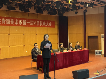 3月24日,美术系第一届团员代表大会在艺术楼演播厅隆重召开。美术系党支部书记梅玉洁、学校团委副书记、学生处副处长高馨、美术系党支部副书记董剑寒、学工科长孙涛以及105名团员代表参加了会议。大会由美术系综合科科长刘燕主持。
